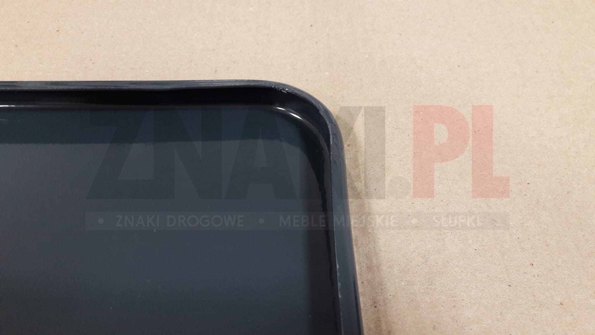 Tabliczki do znaków wykonane są z blachy ocynkowanej ogniowo o grubości 1,25 mm, posiadają podwójnie zaginane krawędzie na całym obwodzie, lico tabliczki wyklejane jest folią odblaskową typu 1 lub typu 2. Tył tarczy malowany jest proszkowo farbą koloru szarego RAL 7016. Tabliczki charakteryzują się najlepszymi parametrami wytrzymałościowymi spośród produkowanych znaków dzięki podwójnie zagiętym krawędziom.